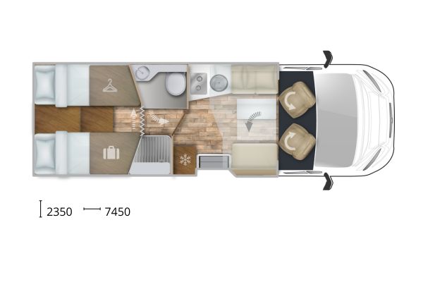 La CI Horon 87XT es perfecta si buscas una autocaravana perfilada de 4 plazas con camas gemelas, que combine espacio, comodidad y tecnología de última generación. Su habitáculo amplio y su diseño funcional la convierten en la compañera ideal para recorrer cualquier destino con la máxima libertad.
