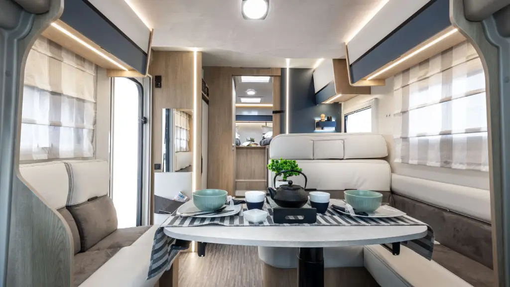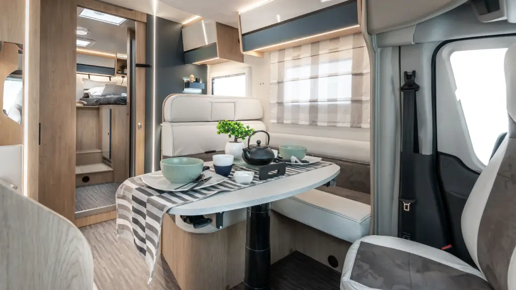 El confort a bordo se refuerza con una cocina de dos fuegos, una zona de estar luminosa con mesa de pata abatible eléctrica, claraboyas en la zona central, trasera y en el baño, ventanas SEITZ, oscurecedores plisados en cabina y un gran Skyroof que aporta luz natural al interior. La calefacción diésel garantiza un uso confortable durante todo el año.