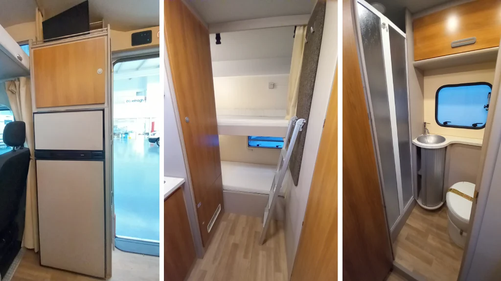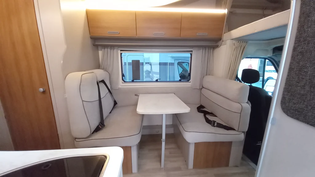 En la parte delantera, la clásica cama capuchina ofrece un descanso amplio y confortable, convirtiéndose en uno de los espacios favoritos para viajar con niños o para quienes buscan una cama fija de grandes dimensiones. En la zona trasera encontramos literas largas y muy prácticas, con acceso cómodo y con espacio de almacenamiento alrededor. Y cuando se necesita más capacidad de descanso, el salón se convierte en una cama adicional, logrando una configuración total perfecta para grupos de hasta seis plazas de dormir.