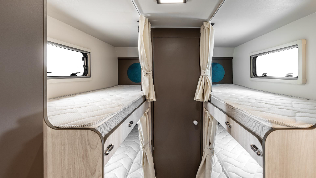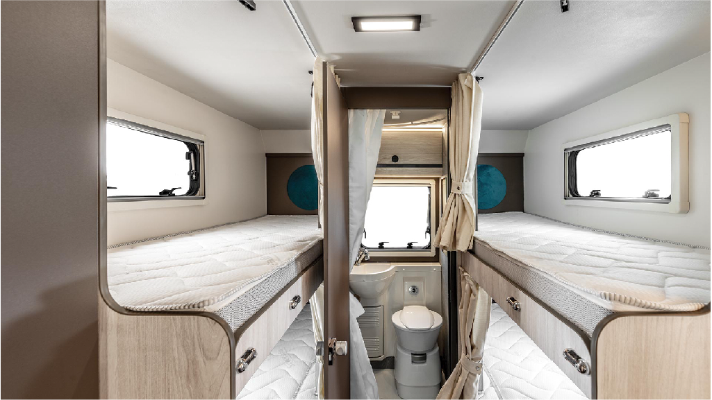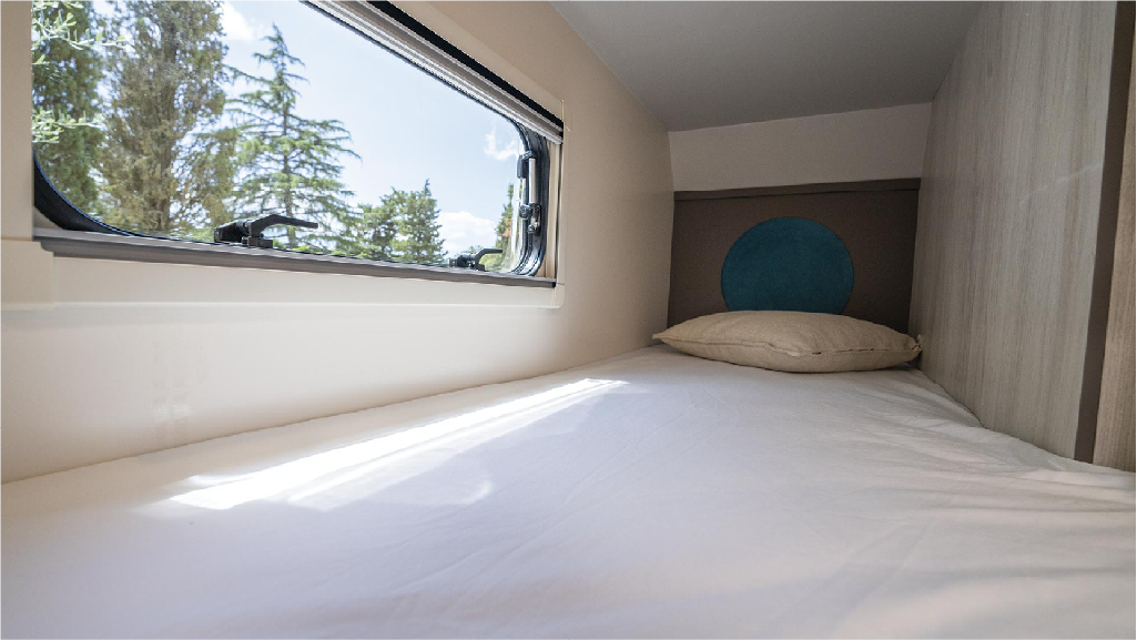 Diseñada para ofrecer comodidad, la Kilig 50 cuenta con camas para 6 plazas, distribuidas estratégicamente para maximizar el espacio y el confort. La cama de matrimonio en la capuchina (1400 x 2200 mm) ofrece un descanso espacioso, mientras que las literas (780 x 2000 mm) garantizan comodidad para los más pequeños o invitados.
