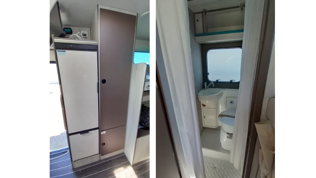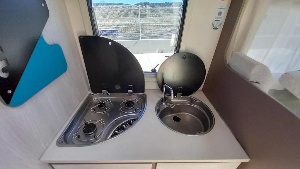 La cocina dispone de tres fuegos y frigorífico de 141 litros, mientras que el sistema Truma Combi C4 proporciona calefacción y agua caliente para todo el habitáculo.