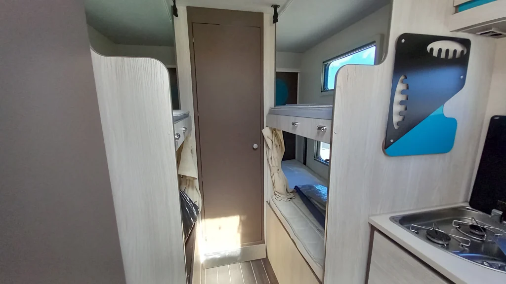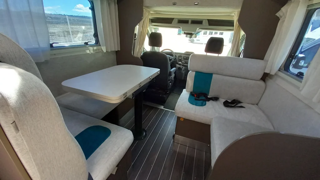 Cuenta con 6 plazas homologadas en circulación y 6 plazas para dormir, siendo una opción ideal para familias o grupos. Su distribución incluye una amplia cama de matrimonio en capuchina (140 x 220 cm), literas traseras (78 x 200 cm) y un salón funcional que aporta comodidad durante el viaje.
