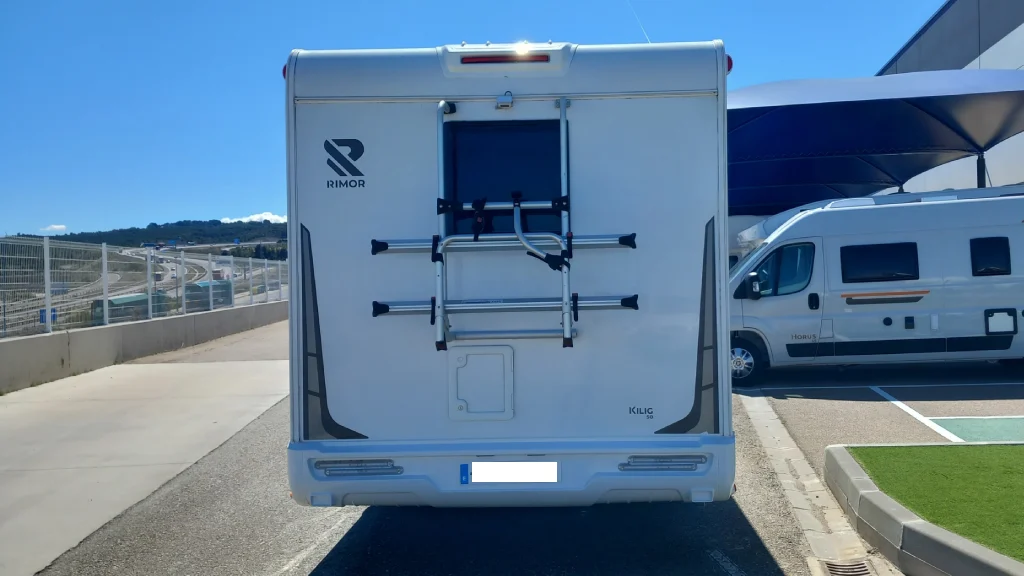 En la parte trasera, destaca su garaje de gran capacidad con doble acceso, perfecto para transportar bicicletas, equipaje o material de viaje.