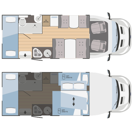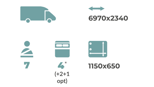 La Rimor Kilig 79 Plus es una autocaravana perfilada pensada para grandes familias y grupos de viaje. Con 7 plazas homologadas y un interior versátil, ofrece literas traseras de gran tamaño, una cama basculante delantera, una cama de matrimonio en el comedor y una cama individual adicional, adaptándose a todo tipo de configuraciones de descanso.