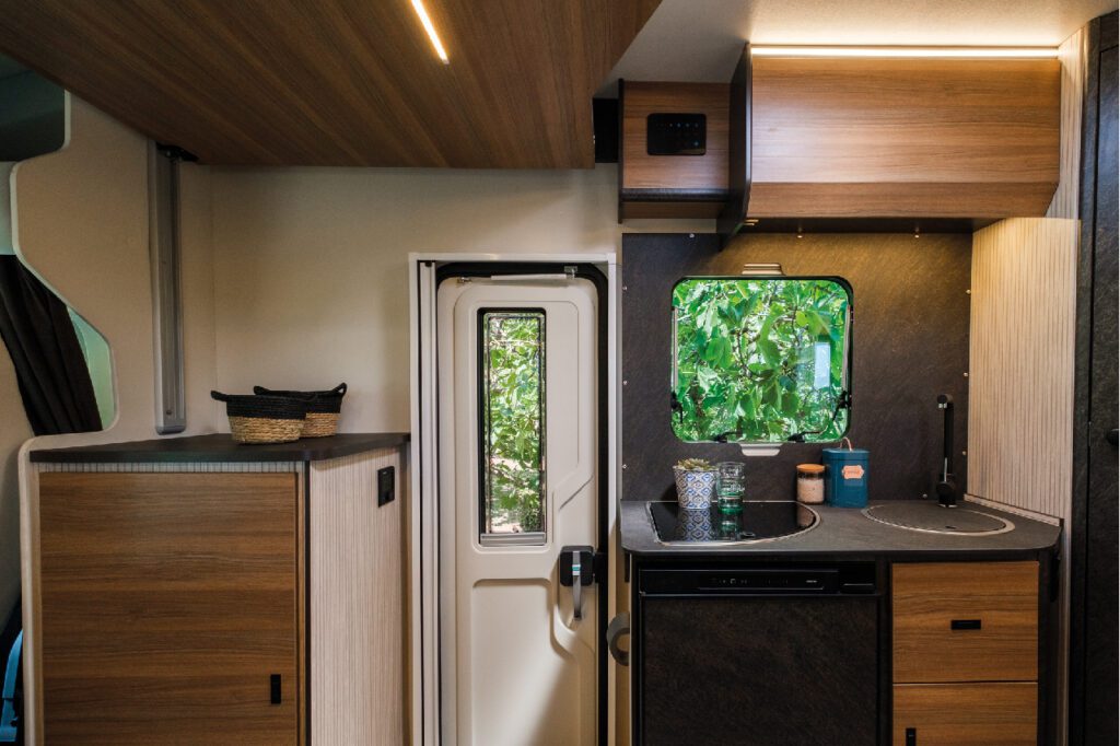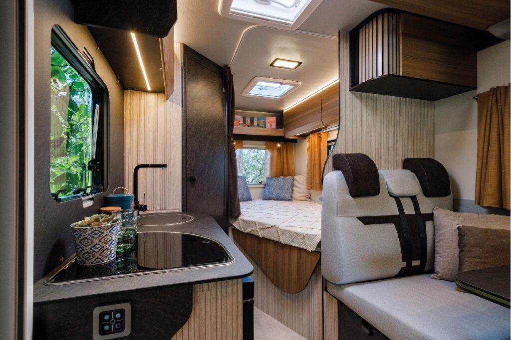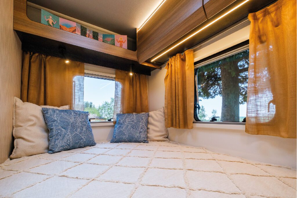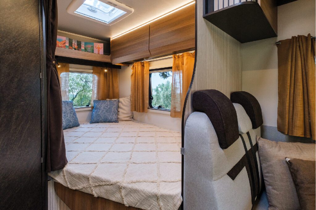 Con una longitud de 6,42 metros y una altura interior de 2,07 metros, la Sarus 12 Plus aprovecha cada centímetro para ofrecer amplitud y bienestar. Los oscurecedores en cabina aportan privacidad y control térmico, haciendo que cada descanso sea más cómodo.