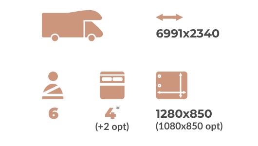 En su interior, cada detalle está pensado para el máximo confort. Dispone de camas para hasta 6 personas, incluyendo una espaciosa cama capuchina de 1400 x 2200 mm, una cama de matrimonio en el comedor y otra en la parte trasera. Además, su amplio arcón trasero facilita el almacenamiento de todo lo necesario para la aventura.