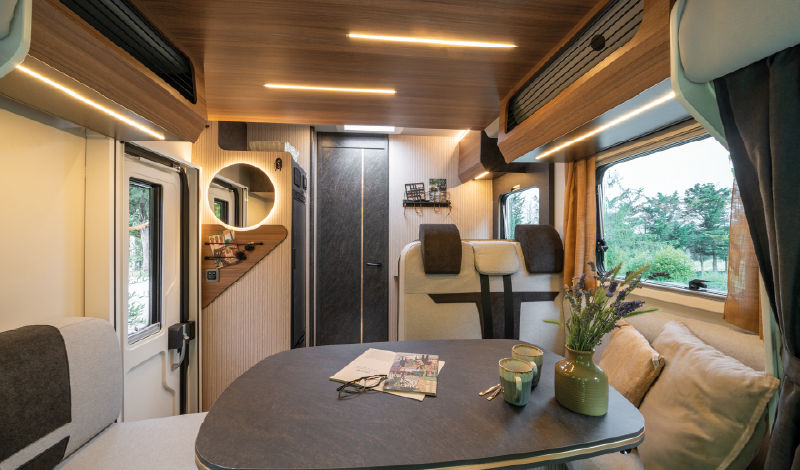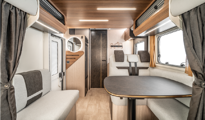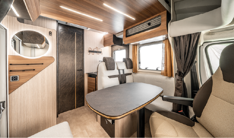 Equipada con motorización Fiat Ducato de 140 CV, la Sarus 68 Plus ofrece un comportamiento ágil en carretera y una conducción agradable gracias a sus asientos Captain Chair, el control de velocidad, la suspensión trasera en composite y la asistencia al arranque en pendiente. Además, incorpora detalles que facilitan la vida a bordo, como elevalunas eléctricos, retrovisores eléctricos, antena DAB integrada y faros antiniebla, todo de serie.