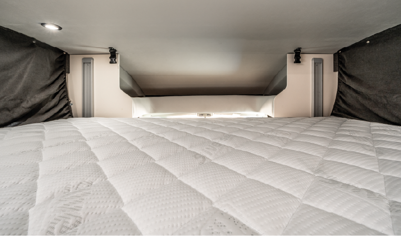 En su interior, este modelo ofrece 5 plazas homologadas para viajar y hasta 5 plazas para dormir, distribuidas en una cómoda cama trasera de matrimonio, una cama basculante delantera y una cama individual adicional en el comedor. Ideal para familias con niños o grupos de amigos que valoran la flexibilidad y el confort.