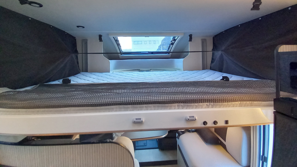Su distribución está diseñada para ofrecer el máximo confort: cuenta con camas para 4 personas (incluida cama basculante) y la opción de una plaza adicional. Ideal para parejas que viajan solas o en compañía, sin renunciar al espacio ni al descanso.