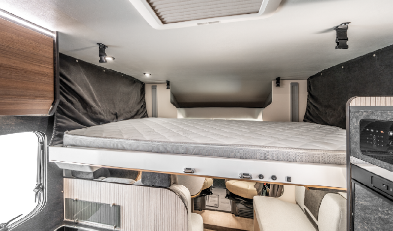 – Cama basculante delantera de 1220 x 2000 mm