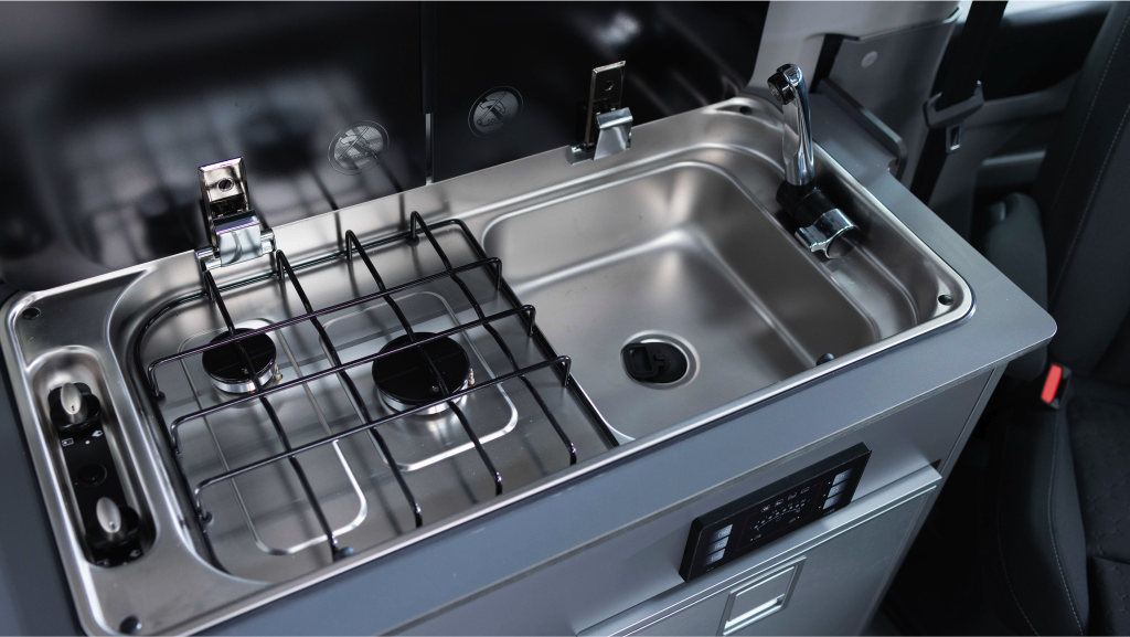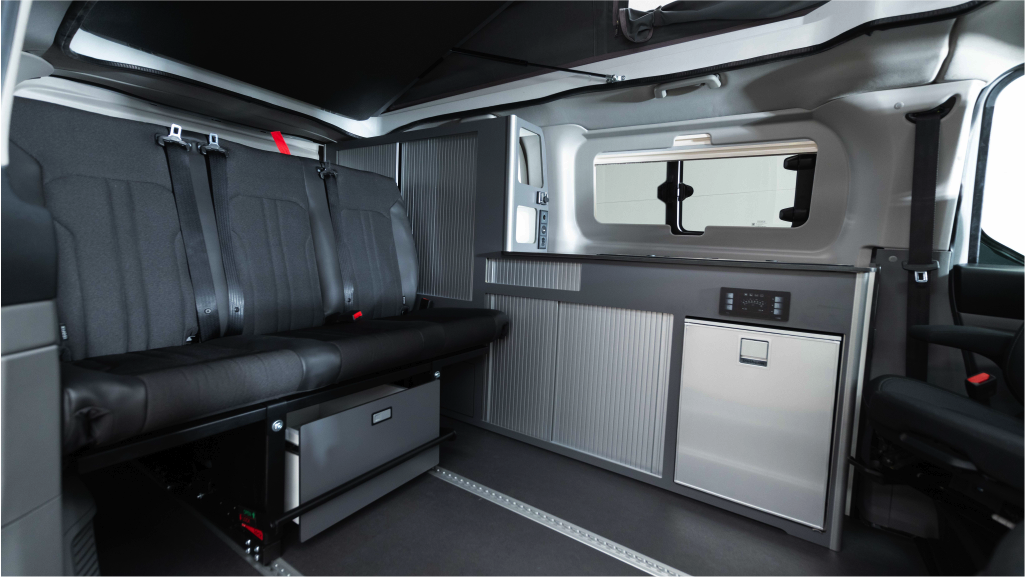 Una de las características más destacadas de la Panama Peak P10+ es su versátil banqueta de tres plazas, que se desliza a lo largo del vehículo para adaptarse a tus necesidades de espacio. Con esta función, puedes crear una zona de estar espaciosa para relajarte durante el día y convertirla fácilmente en una cómoda cama doble para descansar por la noche.