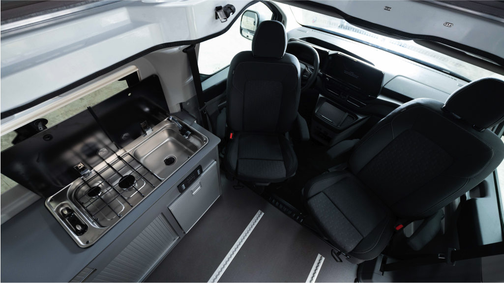 La camper está diseñada con numerosos espacios de almacenamiento estratégicamente ubicados para mantener tus pertenencias organizadas y seguras durante el viaje. El revestimiento estratificado resistente a los golpes y al agua hace que la limpieza sea rápida y sencilla, permitiéndote disfrutar al máximo de tus aventuras sin preocupaciones.