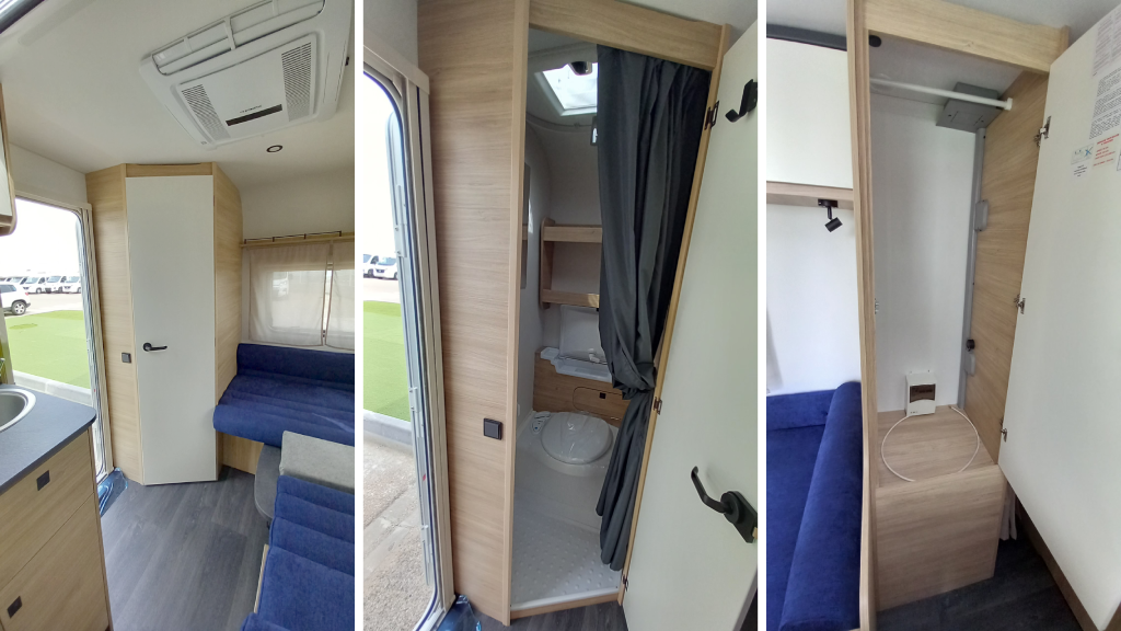 El habitáculo ofrece una altura interior de 1,95 m, con iluminación LED, aire acondicionado, y acabados pensados para el confort. El pack Cosy añade detalles muy útiles como claraboya panorámica, mosquitera de puerta y puertos USB junto a la cama.